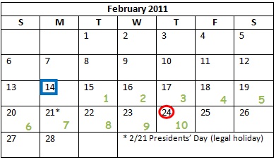 Let’s return to Paul’s consideration of when to provide notice of the piggyback and the donation. According to Rule 6, Paul will count the meeting date of Thursday, February 24th as day 10 for purposes of the piggyback notice.  Counting backwards, he discovers that the notice must be published by Monday, February 14th.  He includes weekends and the Presidents’ Day holiday (February 21st) because the period of time is more than seven days, and day 1 is the day after the notice is published.
