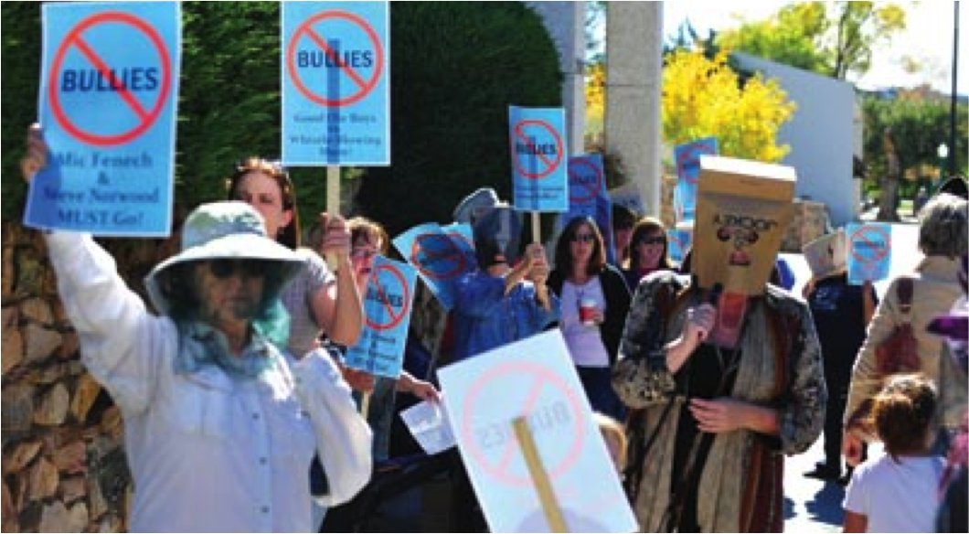 Riley participated in the November 1 protest (actual protest pictured above). She additionally posted several negative comments about the mayor and other city officials on Facebook and other social media sites.
