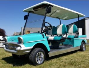 Can local governments levy property taxes on residential golf carts? This seemingly simple question doesn’t have a simple answer. I say yes, but the NC Department of Revenue says no. A good chunk of money hangs in the balance as golf carts grow more popular and more upscale (check out this faux ’57 Chevy cart listed for $15,000!).